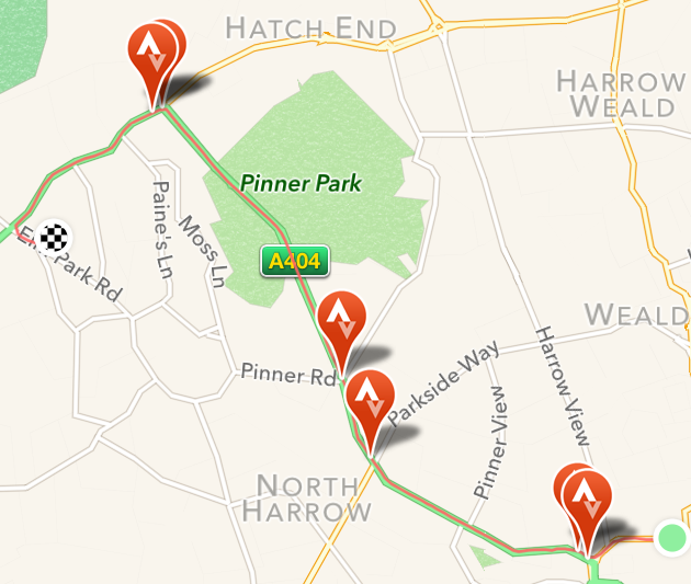 Since we leave for UK exploration/shakedown on Thursday, we decided to run this morning’s errands on the bikes rather than by Tube. We put an address into the GPS, after determining that all the towns near here are part of London and you have to identify which borough you want using the two letters visible on the GPS (of which 5 start with Ha and we were going to Harrow). Then I pushed Ride and we were off. The GPS actually gave us a decent route and got us where we wanted to go. Riding on the left side of the road, however, is very nerve-wracking. Cars also tend to park on the side of the road (sometimes it’s marked as bike lane, but that does not seem to impact parking), forcing everyone into oncoming traffic to go around. I was really glad to get a ride with traffic before fully loading up the bikes. I also feel much more confident in the ability of the GPS to complement our maps. For those who are interested, I downloaded the maps using this procedure described by DC Rainmaker. It was just as he describes it and now that we’re here I can verify that it works.