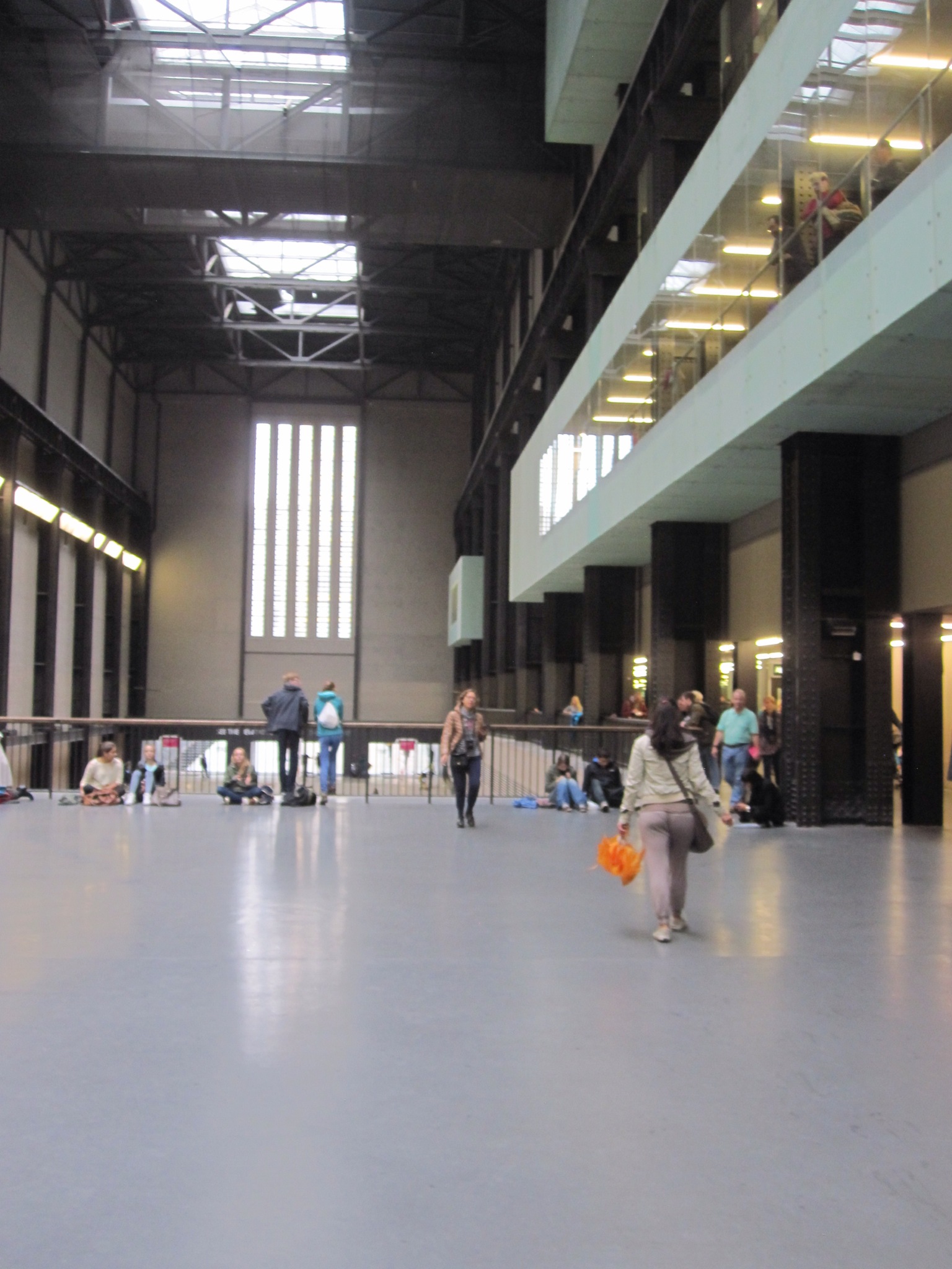 We delayed our departure on the main part of the bike adventure to ensure that my tooth was OK and see about follow-up care. Turns out the follow-up care was a conversation with a dental nurse on the NHS non-emergency phone system. She reassured me that the healing was progressing, and advised me to continue with anti-inflammatories as needed and proceed as planned unless swelling and/or pain returned. Since I didn’t need to actually see a dentist, we had an extra day for London activities. We arrived (almost 3 weeks ago now!) with a fairly short list of tourist activities for London. We checked off a few during the first week, but still had a few remaining. Of those, we chose to visit the Tate Modern. It is unique in that it is housed in a former power plant. Here is a shot of the turbine room.