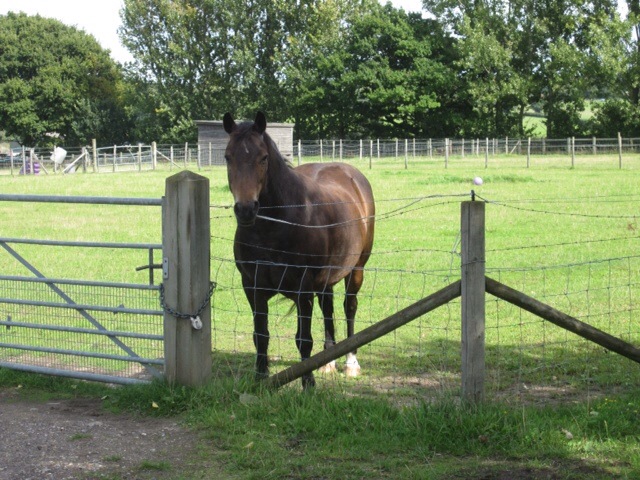 After lunch we slogged our way through a lovely but hilly part of the Garden of England, which got its nickname because of the plethora of apple and pear orchards. We were very good and did not pull any off the trees, even when this horse beseeched us.
