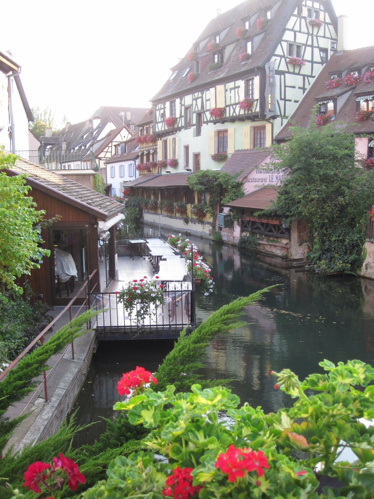 We had a nice rest day in Colmar yesterday. We did laundry (of course), refueled, investigated and adapted our plans, and really did rest some. Colmar is quite charming. The intersection of French and German traditions in Alsace seems perhaps like the best of both worlds. I’m also happy to report that the Ibis Budget Colmar hotel is just fine. Rooms are small and come in only one configuration (double bed with a perpendicular bunk overhead), but provide all the necessities, except perhaps shampoo. But these budget travelers have come to expect neither shampoo nor washcloths and find that we’re fine with buying these items so long as we have the free wifi that budget chains generally provide.