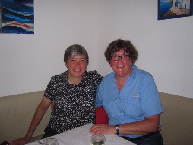 Final picture of the day. Me with my red face (sun? Wine?) but Angie looking lovely as we memorialize a great evening.