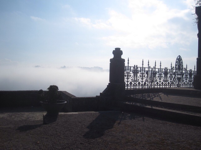 When we reached the funicular station, we gasped as we saw the morning mist over the valley. Angie took some cool pictures.