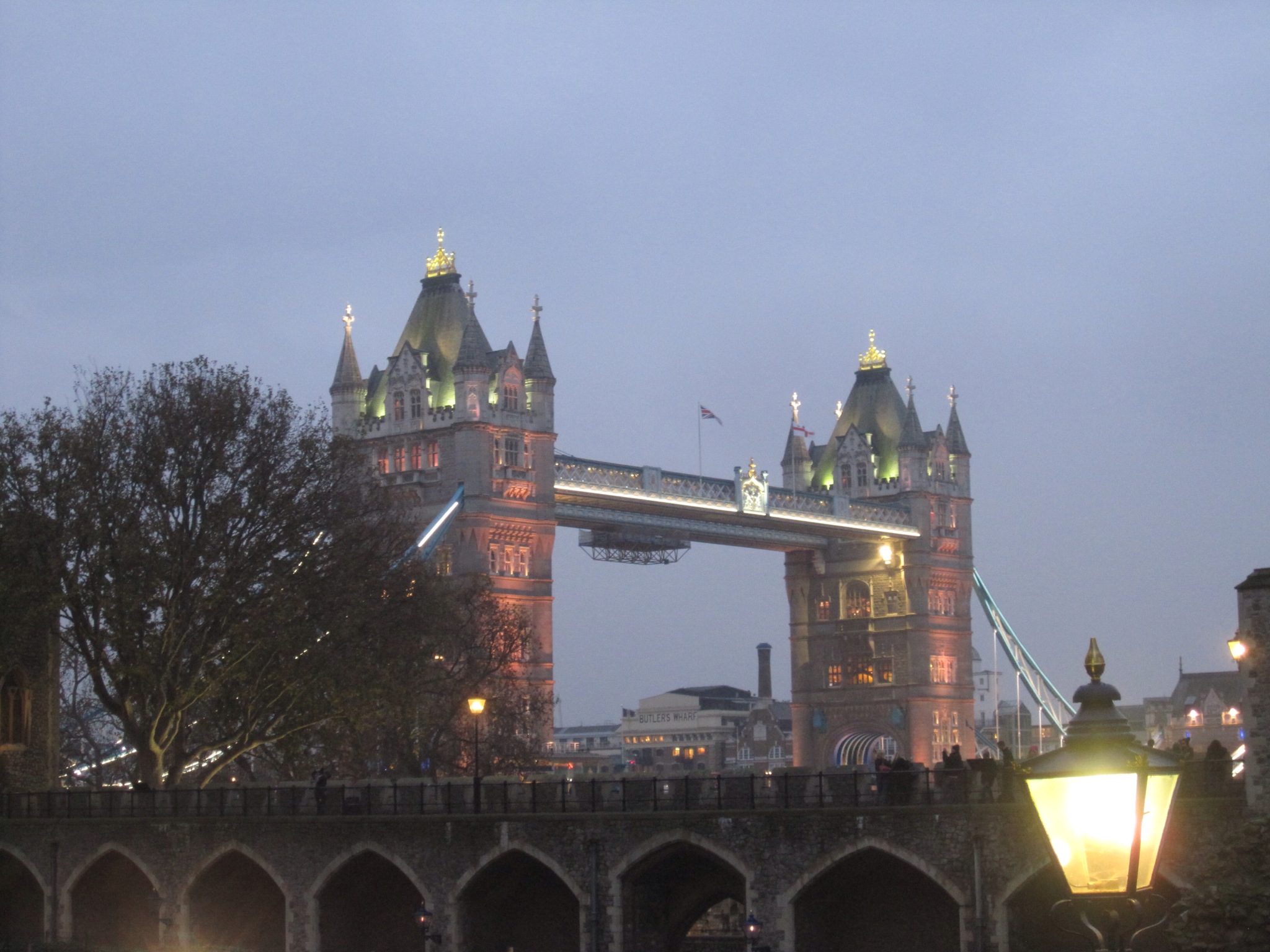 We used our last few minutes at the Tower to see the central White Tower and the collection of armor within. We (predictably) skipped the torture exhibit. It was twilight by this time and we really enjoyed seeing the Tower of London and the Tower Bridge lit up.
