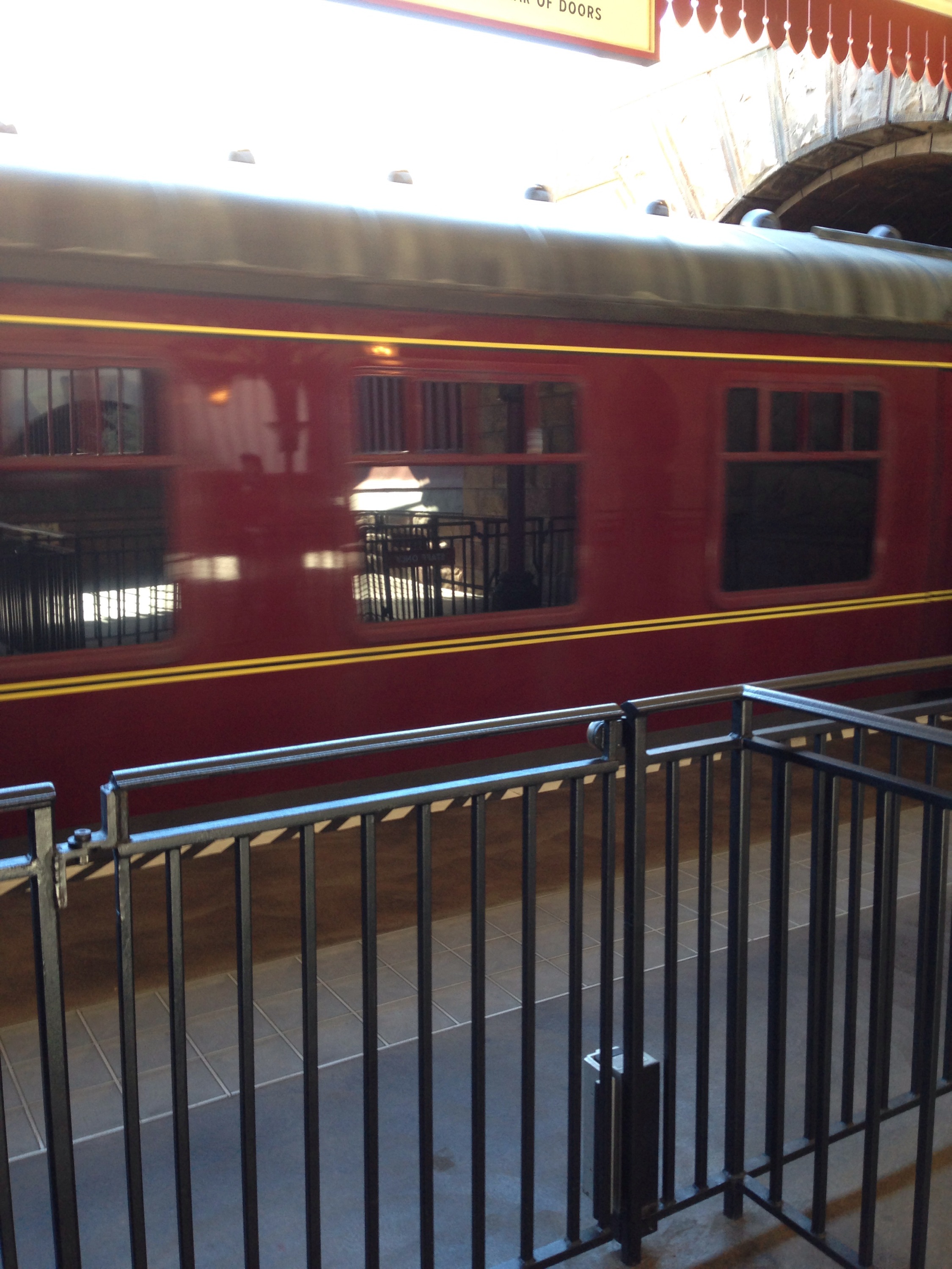 We decided to head for the Leaky Cauldron to see if food would rejuvenate us. We shared a mini pie combination and talked strategy. We had planned to stay for the nighttime show after park closing at 7, but we were both feeling tired and ready to hit the road. So we decided to ride the Hogwarts Express back to Hogsmeade (i.e. Islands of Adventure) and then head towards the car. We finally found the British candies (but no Crunchies π¦ ) in the queue, but declined to pay $3.50 for an English Mars bar. The ride back was as enjoyable as the ride there, and included some great theming and a special effect at Platform 9 3/4 (not the owl–look for the effect if you go).