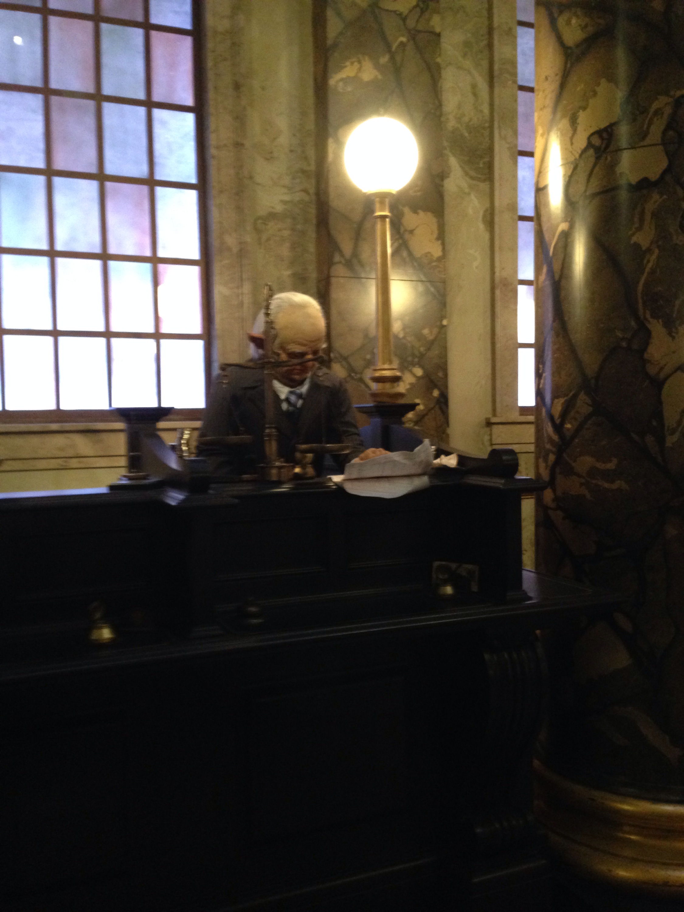 Minions still had a long wait, so we stopped by the American Express lounge (show your card and multi-park ticket purchased with it to get in) for a complimentary bottle of water and bag of chips and a chance to rest for a few minutes. We experienced the Disaster attraction (pretty silly, but mostly amusing) on our way back to Diagon Alley.