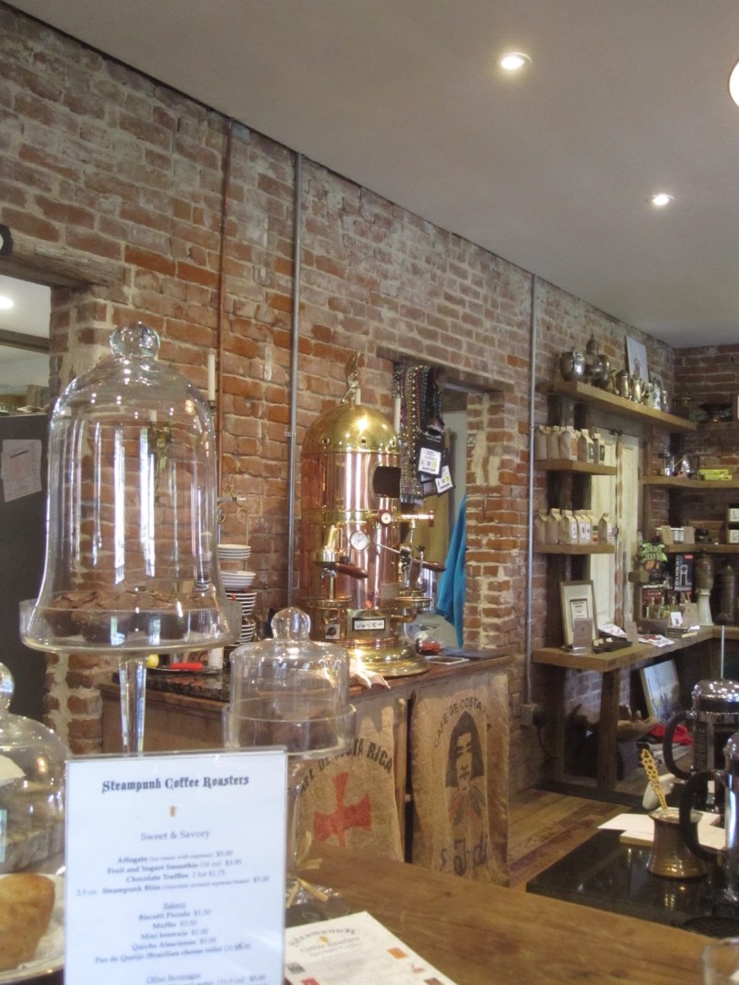 One of the people behind the counter told me that we were allowed to bring the dog in! So before I go any further on what a great place and experience this was, I have to tell you the name. It’s Steampunk Coffee Roasters.