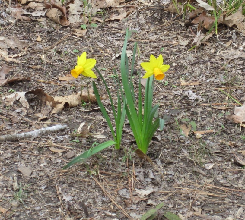 We saw the same pair of vultures on the return, as well as some park service employees replacing signs. Once back to camp, we packed up the tent and the bikes and finally reorganized the chaos of the back seat. I took a few photos of the site’s daffodils and we managed to get out by around 1 pm and headed up the Trace towards Clinton.