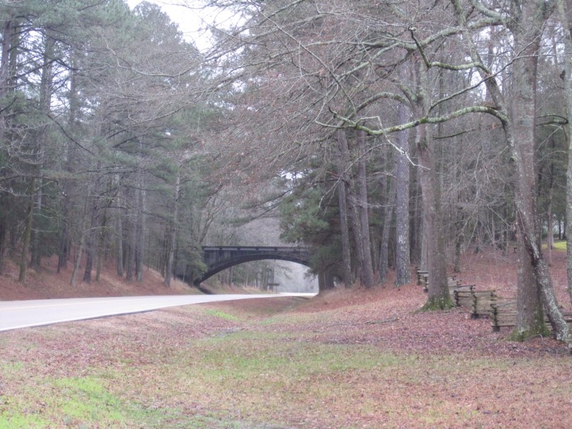 Our next fun stop was Jeff Busby, which is one of the campgrounds at which we had intended to camp until the weather forced a change in plans. We wanted to see what we had sacrificed, but we also wanted to check out the view from the top of the hill in the campground. It’s actually called Little Mountain, and apparently you can see for up to 20 miles on a clear day. We couldn’t see that far but it was a pretty view. The campground is named for Thomas Jefferson Busby, a member of Congress who introduced a bill to get a survey of the Trace completed. It was only four years after that that the Trace was made a unit of the National Park System.