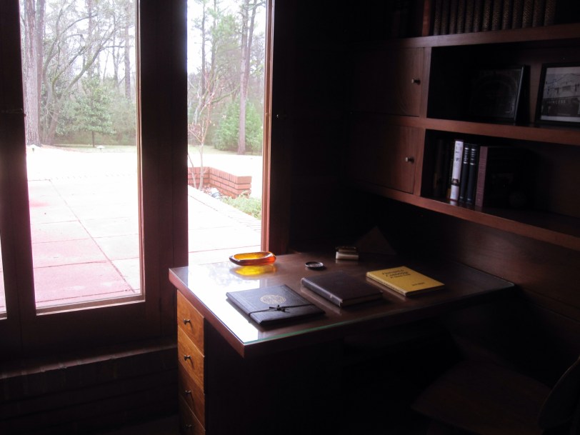 The Rosenbaum House was the second in a series of homes Wright designed to be affordable–he called them Usonian after the “United States of North America.” The houses were designed to be small initially, but able to grow if family needs required it. That makes this house a perfect example, since it was originally about 1500 sq. ft., but about 1000 sq. ft. were added later to accommodate the couple’s four sons.