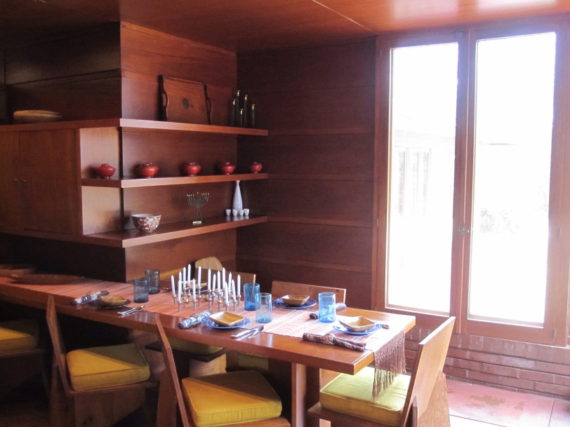 The Rosenbaum House was the second in a series of homes Wright designed to be affordable–he called them Usonian after the “United States of North America.” The houses were designed to be small initially, but able to grow if family needs required it. That makes this house a perfect example, since it was originally about 1500 sq. ft., but about 1000 sq. ft. were added later to accommodate the couple’s four sons.