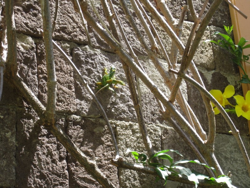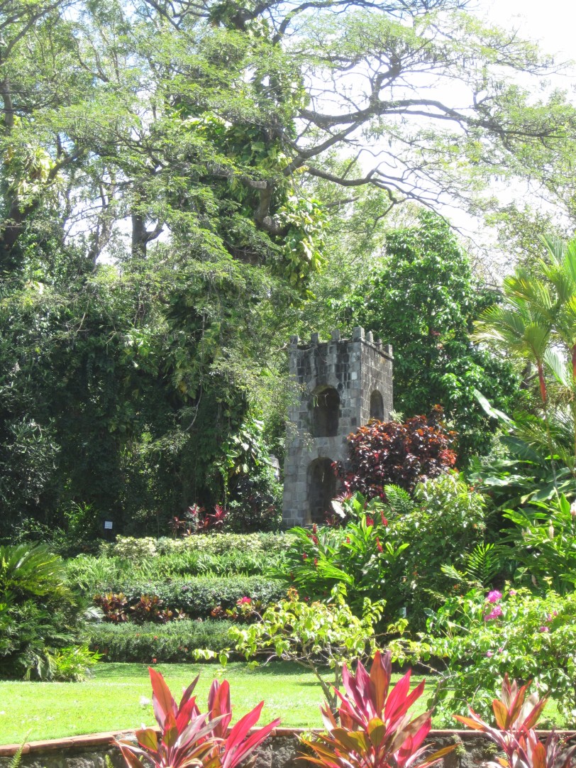Leaving Romney Manor, we headed for the Brimstone Fortress. The drive up to the fortress was interesting, shall we say, and left no mystery as to why all the buses are small buses. There are at least two narrow stone gateways–at switchbacks–that barely accommodate the small buses, with two and three point turns. We were fortunate to see an example of the local green vervet monkey on the way up (and back).