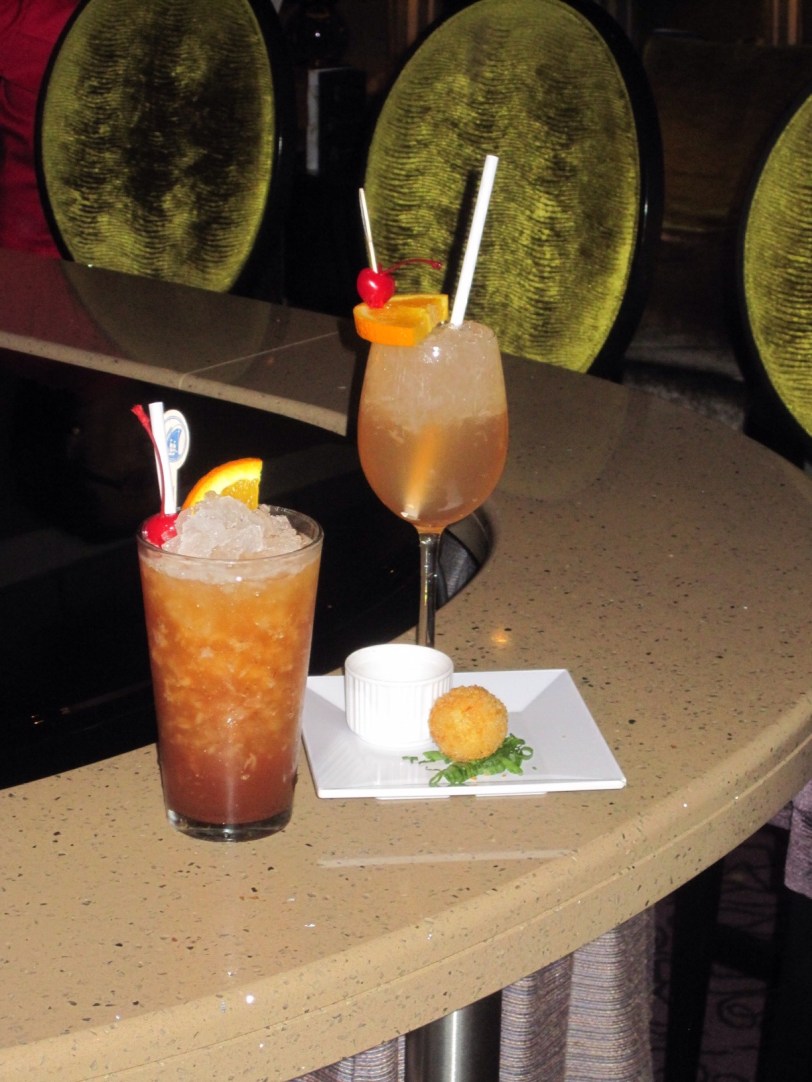 We wanted to rest up because we knew we were going to have a busy evening. Our first event of the evening was the Sip & Savor in the Mix bar, where there’s an appetizer offered by the guest chef along with a cocktail offered by the guest spirits expert Trevor Alberts. The appetizer was possibly my favorite yet from Natacha, a chicken croquette with a mango habanero sauce. Trevor actually made two cocktails on this evening, a planters punch and one called a jet pilot. He talked a little about the background of the drinks, and also mentioned that he is actually an ambassador for Bacardi (I can’t remember his exact title). Angie and I ordered one of each, which we do so we can try both of them, though usually each of us likes one more than the other.