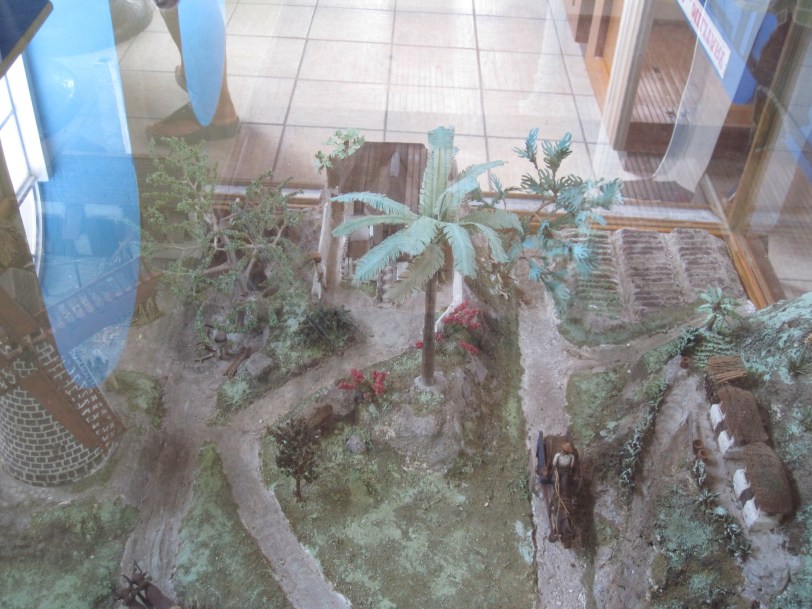 It’s a neo-baroque building dating from 1845 and it sits pretty high on a hill, but it didn’t seem to be very appealing. According to the awful map from the ship, the Museum of Antigua and Barbuda was on the same block, but this was very clearly not the case. We consulted the pages of the guide book excerpt Angie had brought with us and it gave us a much better description of where to go. Once we had located the place (in the building that had served as the courthouse for many years, starting from 1750), we went inside and paid the princely sum of $3 each for our admission. Angie says it was about worth what we paid, but it was a good way to get a flavor of the island and of the sister island of Barbuda, which are in fact joined about 100 feet below the surface of the ocean. Angie took note that a diorama of a sugar plantation that was on display was over 100 years old, so she took pictures of that.