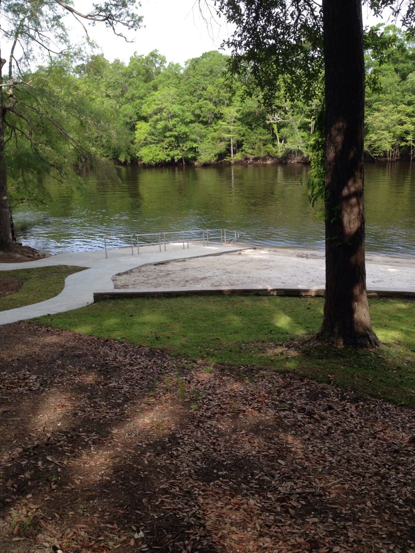 After our day in Savannah, we opted to “skip ahead” a little bit on the route since campgrounds were scarce in southern South Carolina. We had a little trouble making plans, as our campsite on Skidaway Island was distant from decent wifi access. We were only able to get online at a bar a few miles away. Once we got access, we found that our planned destination, Givhans Ferry State Park, did not take reservations within three days through ReserveAmerica, but only directly through the park. So Maureen called in the morning and made a reservation for the current night and the next night. We packed up and hit the road, with a plan to ride the last twenty miles or so to the campground.