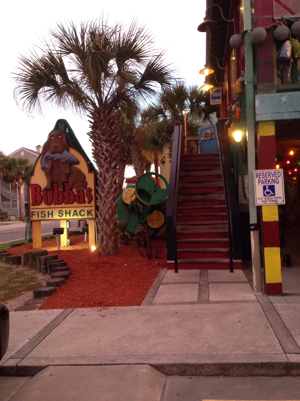 The place we picked was Bubba’s Fish Shack in Surfside Beach. It was a bit further back south than we’d have liked, but it worked out fairly well. Sadly, we found that despite having a dog on their logo, they did not allow dogs on their patio, so we had to leave the dogs in the car. Fortunately, it wasn’t that warm out, which meant the dogs would be fine, but we might not have been that comfy outdoors ourselves. We found out from our server that the restaurant had stopped allowing dogs on the patio after a dog had bitten someone. We couldn’t blame them for changing their policy. They actually did have a space outside and downstairs where people could sit with their dogs, but the weather was not amenable to sitting there this evening.
