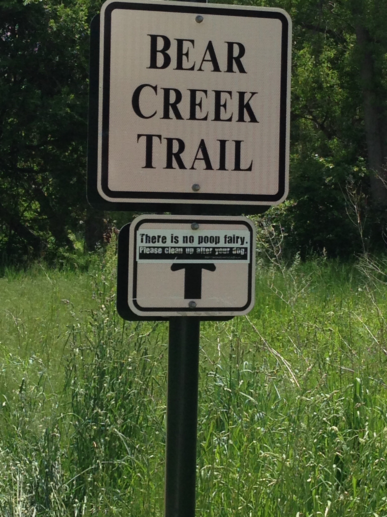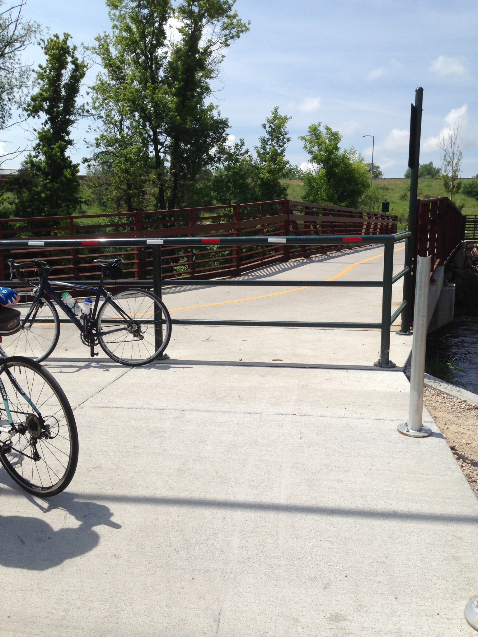 On Wednesday morning, we headed out from our current residence to one of our “usual” bike path rides. It has been raining a lot here, especially by Colorado standards. Thus, all the streams are running high and everything is very green. We encountered only one underpass that had running water on the path (about 6″ deep). As we detoured, we noted that the path was not well-designed for egress at this point. Apparently, we needed to turn off before we knew the underpass was flooded.