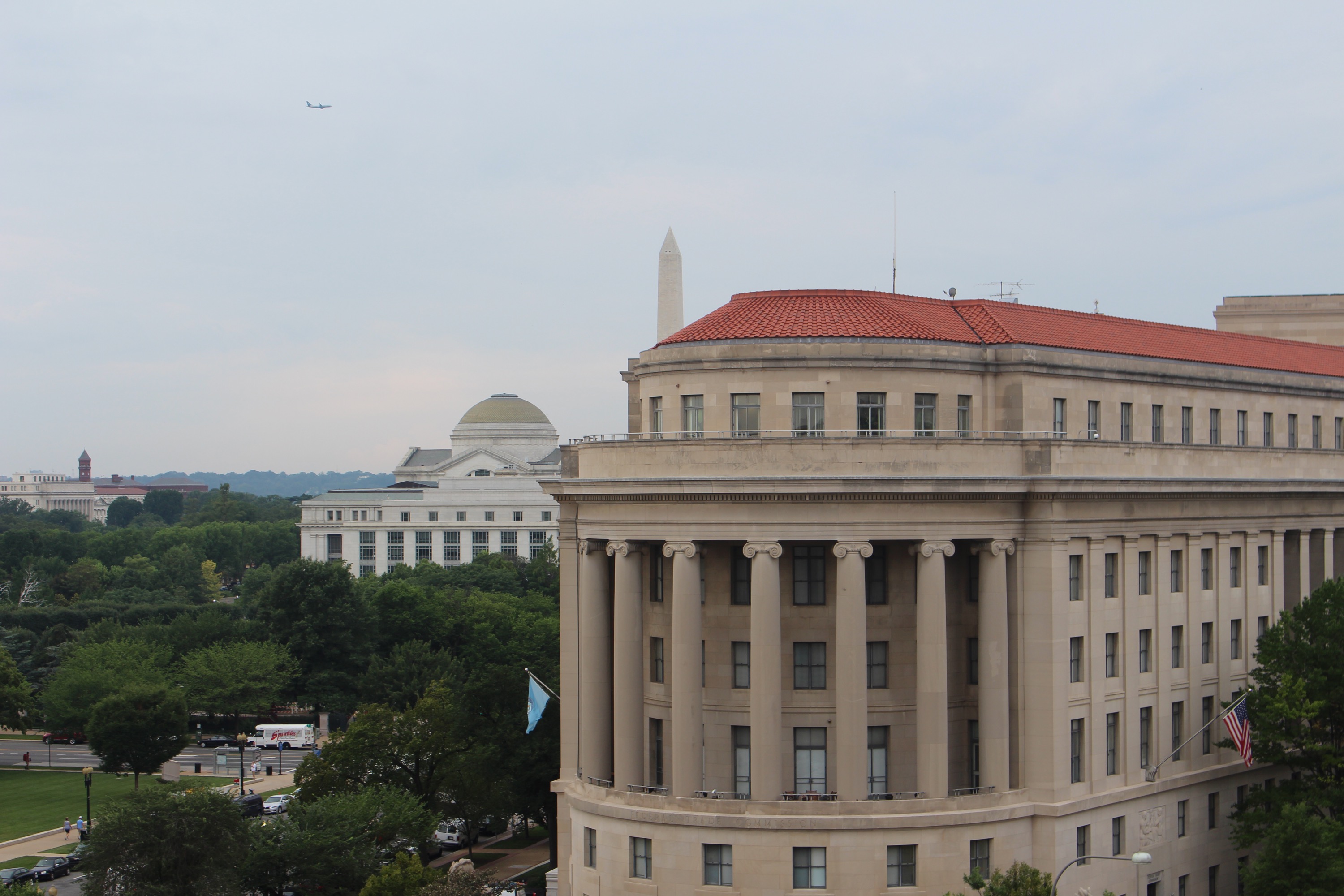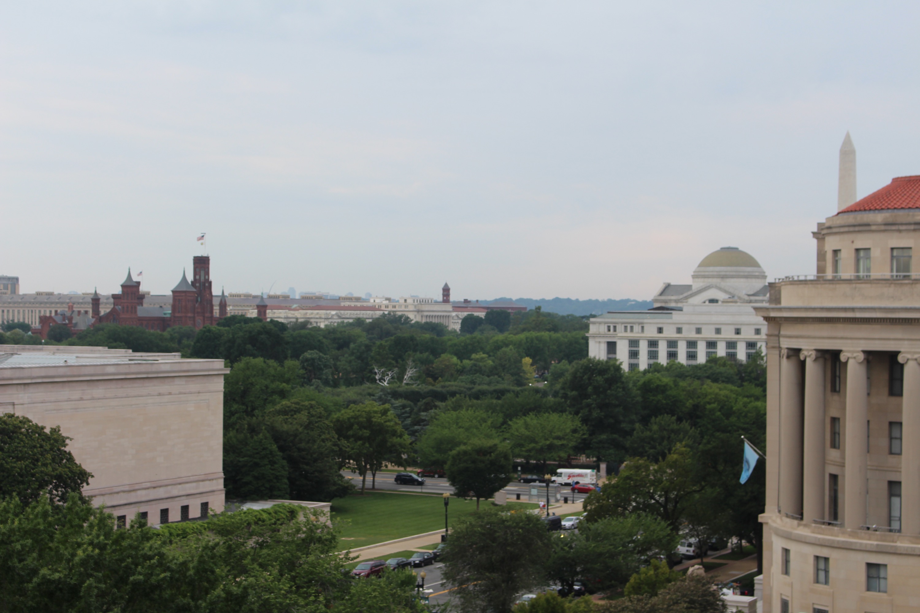 I decided that on Tuesday I should go to the museum I most wanted to see, to make sure I got there. I’m glad I did, because it actually took the best part of two days to see the bulk of the place I picked, which is called Newseum. As its name implies, this is a museum dedicated to the history of the media as well as key moments in U.S history as told by the various types of media prevalent at the time. There is so much to see there, I really can’t remember everything, but here are the highlights I remember. I took some photos to help me remember some exhibits also. The museum recommends that you start on the 6th floor on the Greenspun Terrace, so I did that. Although the day was not super clear, the views of key buildings along and near Pennsylvania Avenue were pretty cool.