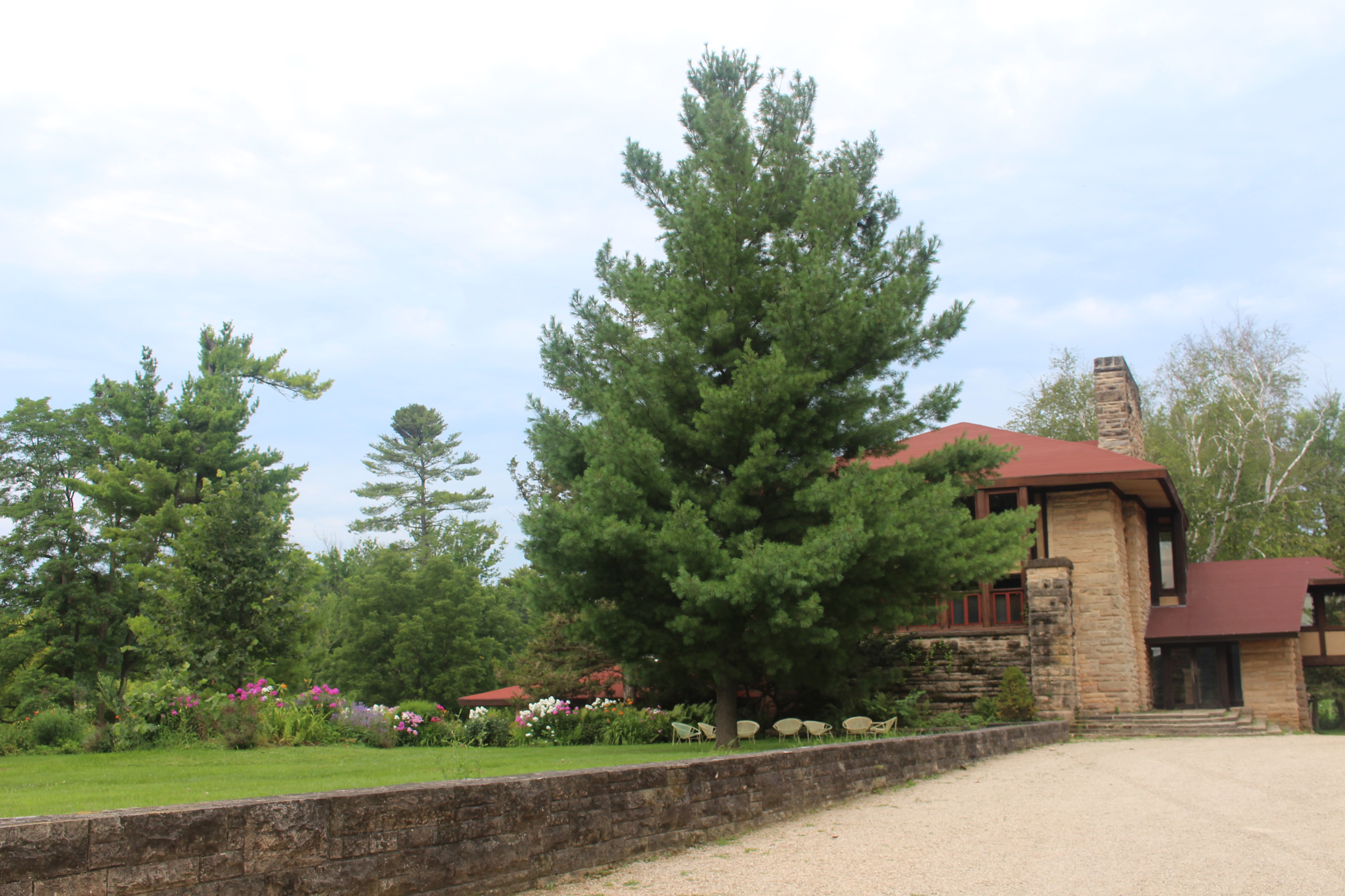 I didn’t completely get, when Angie signed us up for the top level tour at Taliesin, exactly what that involved. It was the whole Megillah, a walking tour of a huge part of the estate, and not just the house that had been Frank Lloyd Wright’s home in Wisconsin for much of his creative life. I also did not know that Taliesin became an architecture school, with studies now divided between this location and Taliesin West in Arizona (on the bucket list for sure). I’m so glad we saw as much as we did, even though it was rather overwhelming.