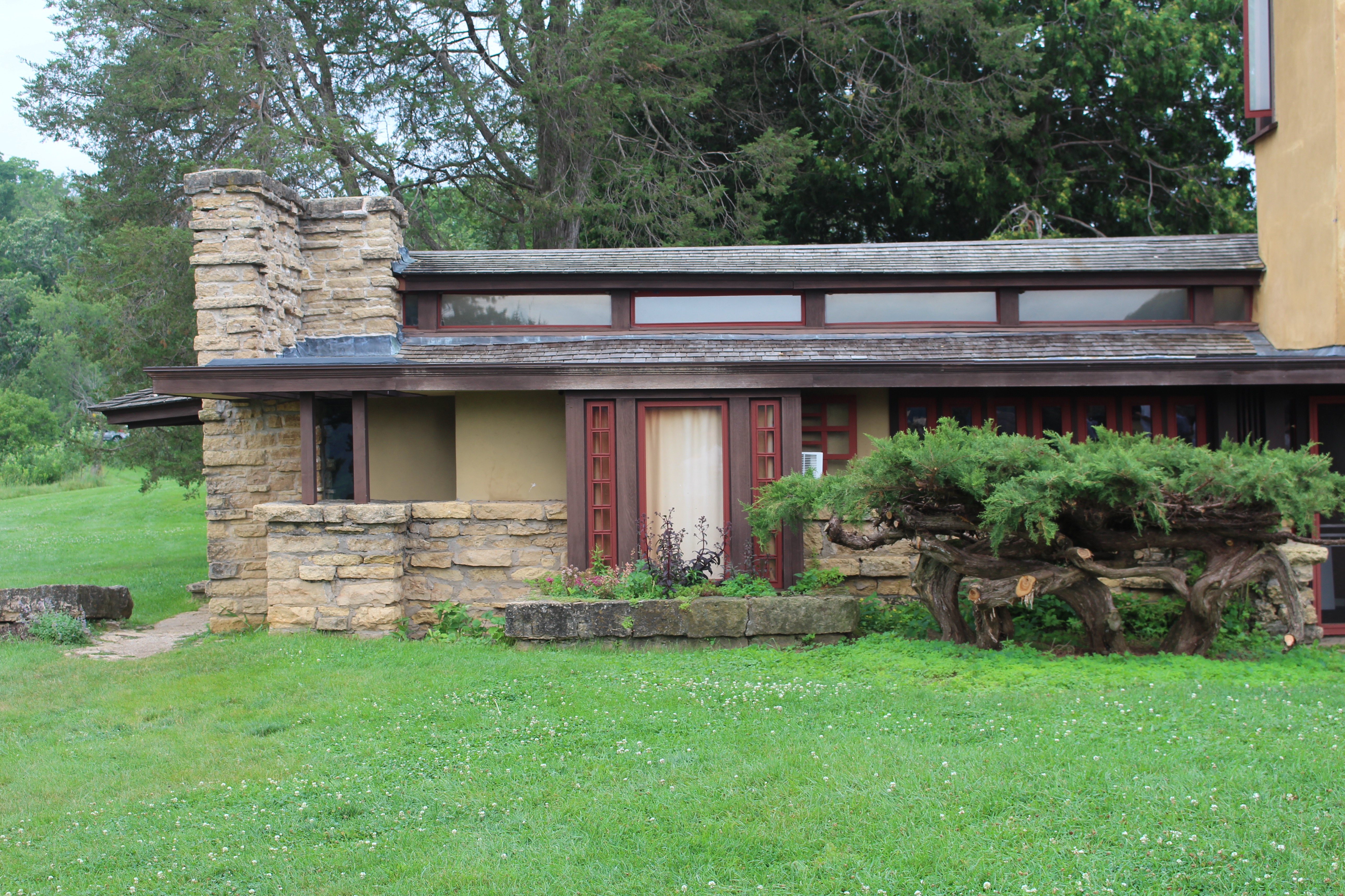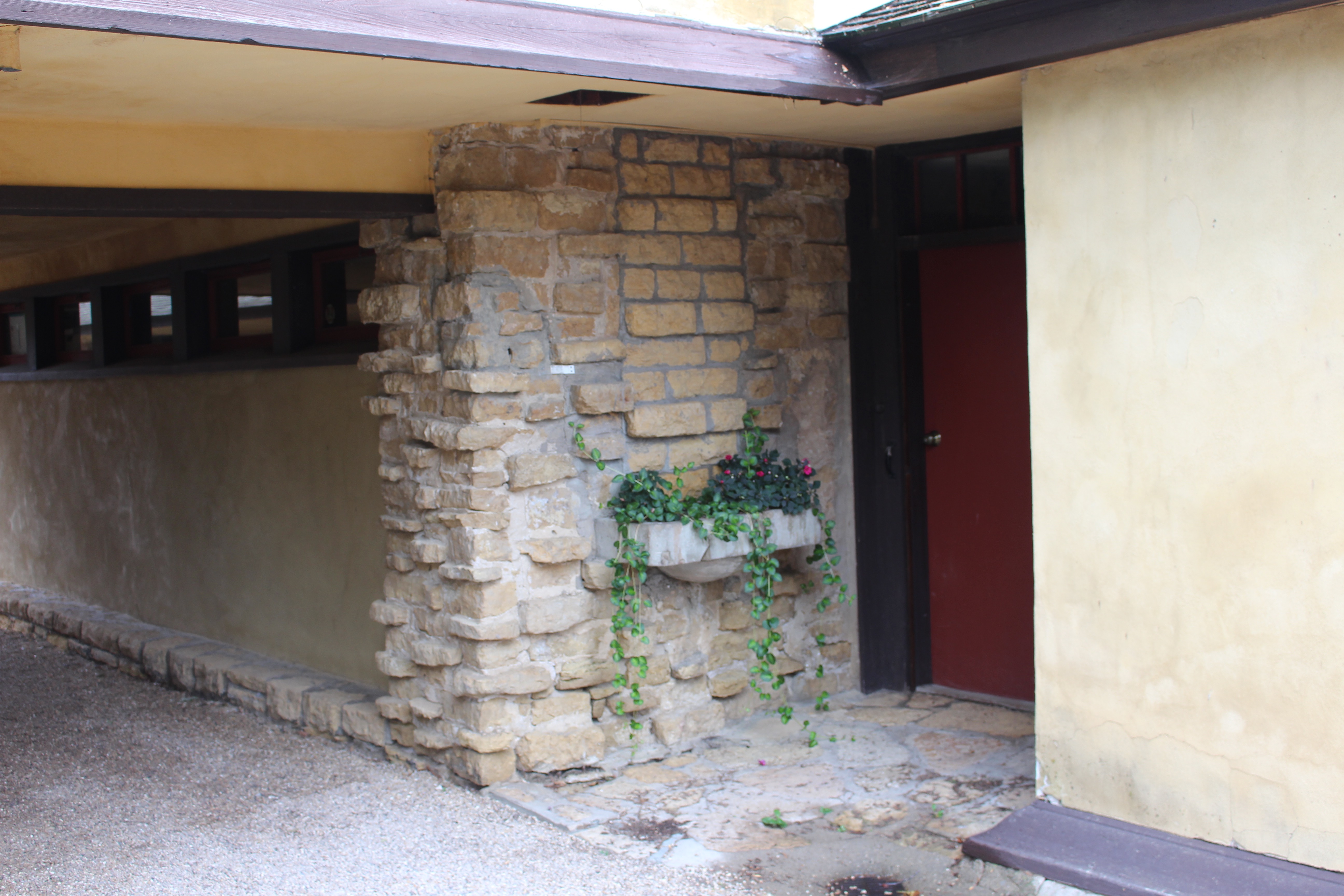 He was very focused, and many people reading probably already know this, on an organic approach. He tried to tie his designs to the earth in different ways. One example of his approach came out at the Hillside Home School, when he was upset that the stonemason added a cornerstone to the building naming him as the architect. He felt this wasn’t organic, though he did consent on some buildings to have a small tile with his initials in a few of the buildings he designed, because he felt that was ornamentation.