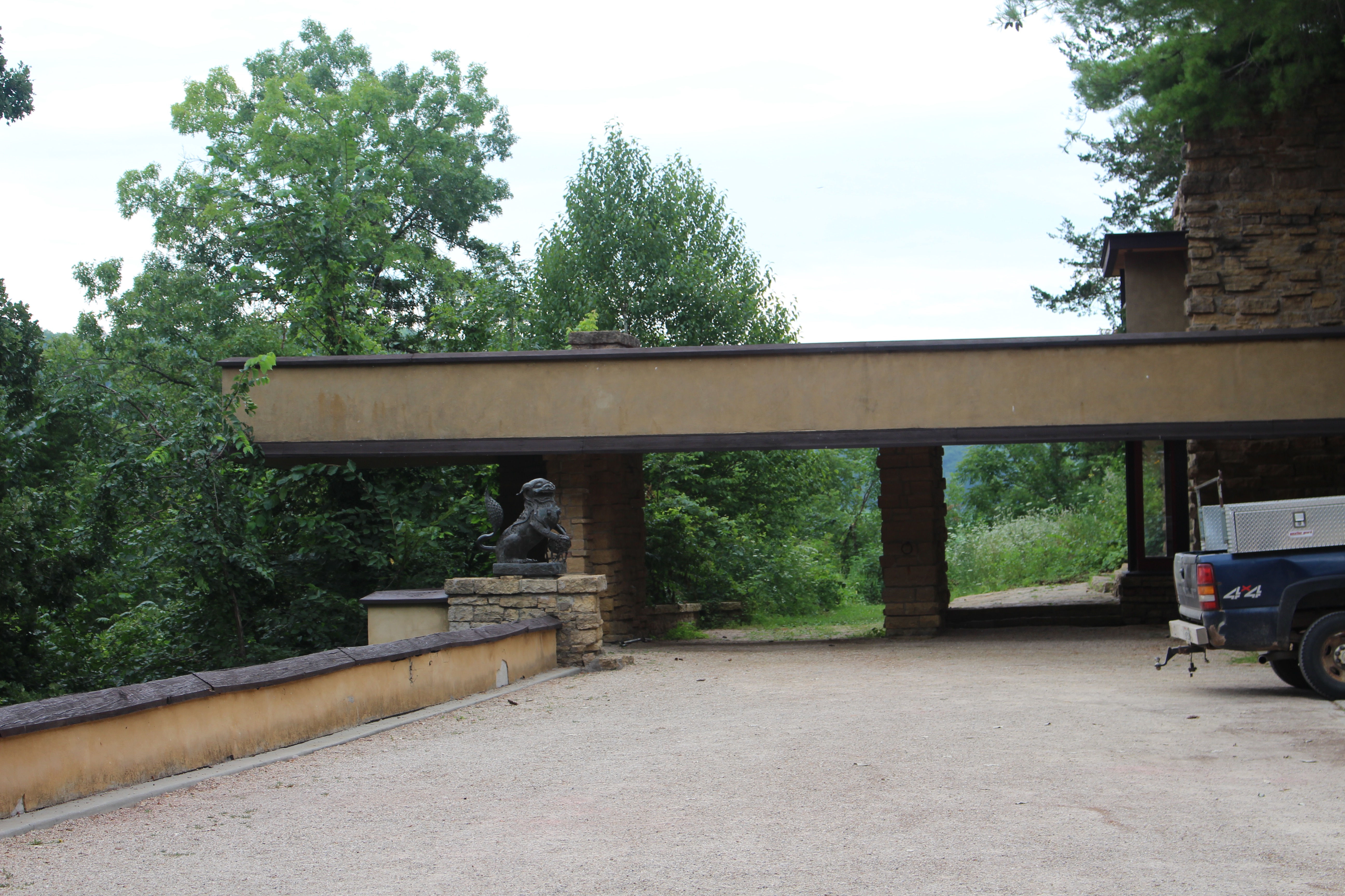 The main entrance to the house was added in the 1940s because Wright wanted a better entrance now that cars were more common, though he loved to ride and there were also tie ups for his horses add the main entrance.