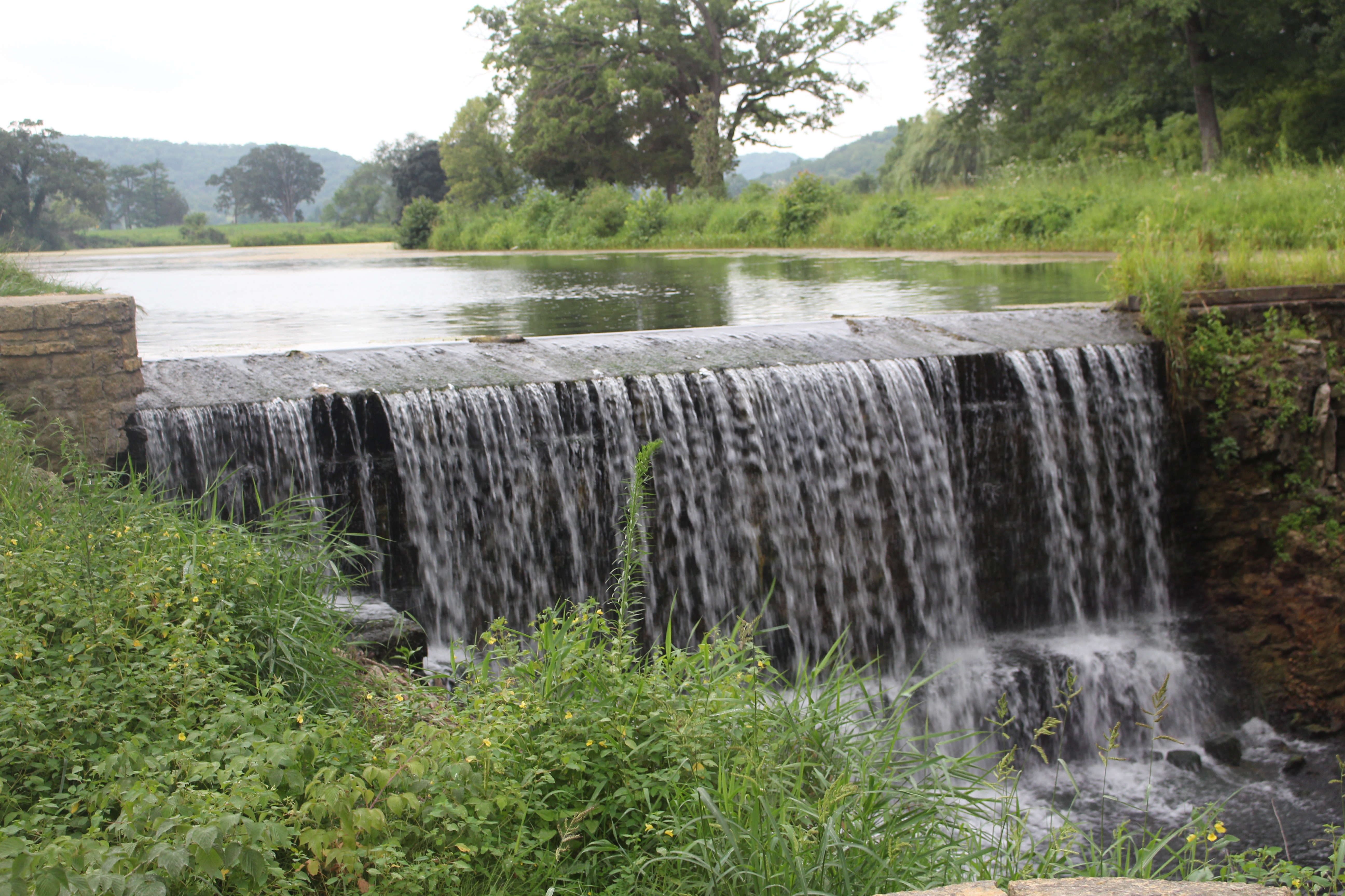 As with the courtyards, there is a sightline all the way through the main house from his bedroom to the other end of the house. Amazingly, Wright’s spectacular and spacious bedroom, includes a garish blue rug that is sixty years old (from 1950). It’s a precursor of what would be known as shag carpet in the 60s and 70s and woven in China. Interestingly, we were allowed on the rug, but everyone was wearing booties for the entire house tour. The shuttle picked us up at the main house so we didn’t walk back to the visitor center. We had one final stop on the way back, when the shuttle paused at the dam on the property. Apparently, Wright was too cheap to build the dam properly while he was running the estate so it failed failed twice. His widow had a proper one built after he died.