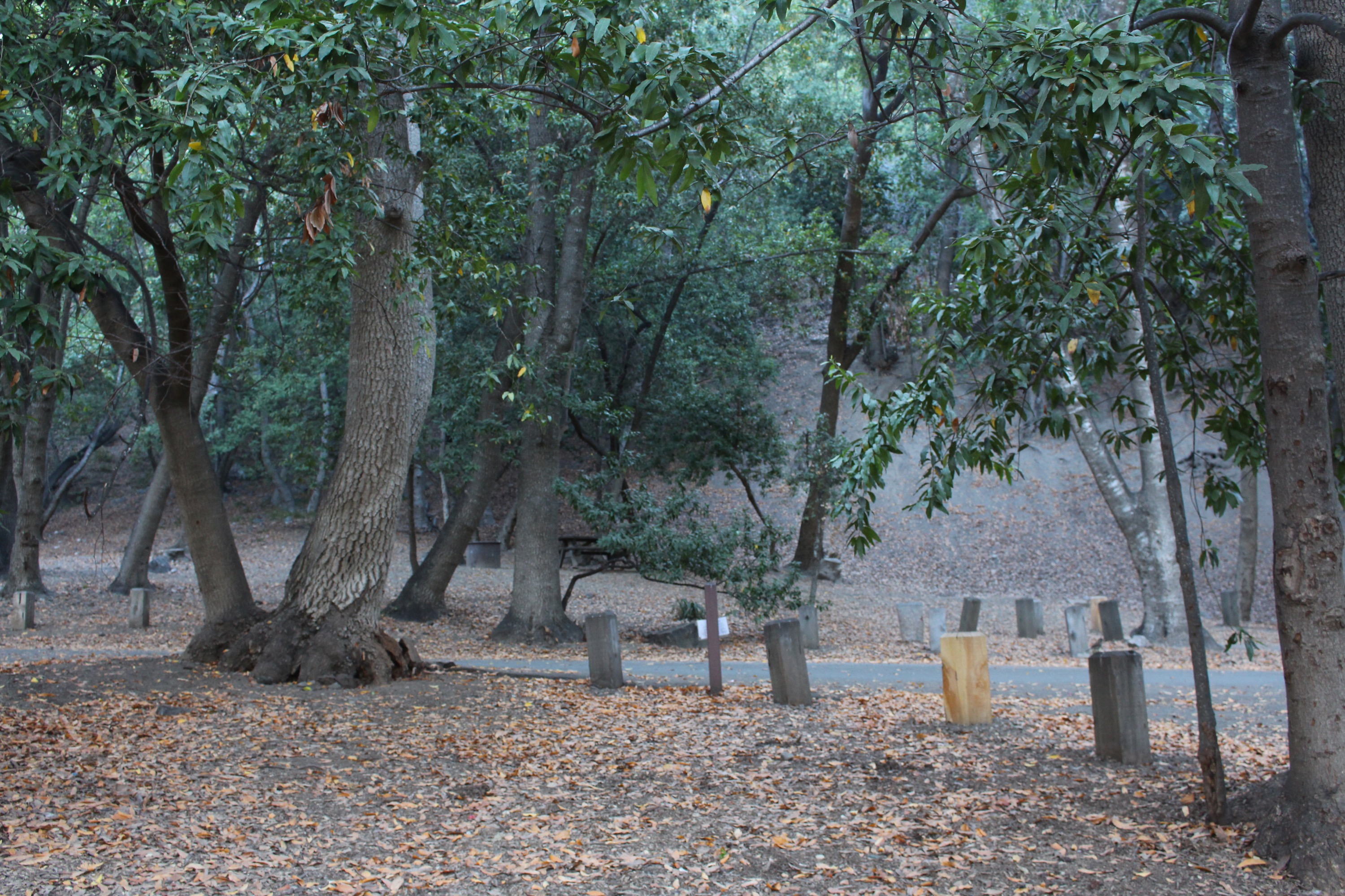 Our day ended at Pfeiffer Big Sur State Park Campground, a little closer to dark than we would have preferred, but worth it for the experiences we had. There were cyclists coming in as we arrived, and we were happy for them that the hiker-biker spots were close to the campground entrance, since when asked how they were they replied “Hungry.” I had one last adventure for the day. The ground cloth for the tent had ended up in the back of our Thule cargo box. I could not reach it from the side door, as we were parked on an incline. So I climbed up on the back bumper and held onto the spoiler to get it out. So far, so good. But then I thought I should also get the tent out from that position. Bad decision. The weight of the tent and the slope of the parking space combined to pull me quickly to the ground. Luckily, I was able to break my fall with my hands, so the face plant into the gravel did not do damage. Even more fortunately, my head missed the wooden post nearby. Lesson learned–be careful how you stand when you remove heavy items from atop a van–especially when parked on a slope. Gravity can be cruel.