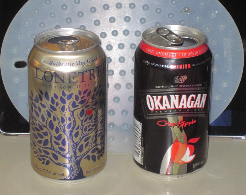 I found the Lonetree cider to be pretty dry (go figure), but tolerable. The Okanagan Crisp Apple, on the other hand, was super sweet. My brother reported that locals drink it over ice by the pitcher. We tried mixing the two, making cider cocktails, and adding ice, but my final conclusion is to stick with Strongbow, as you can get the “British Dry” version in Canada instead of the sweeter American version. (I’m still hoping Heineken will reverse course and let us have the dry version in the U.S. in 2016.)