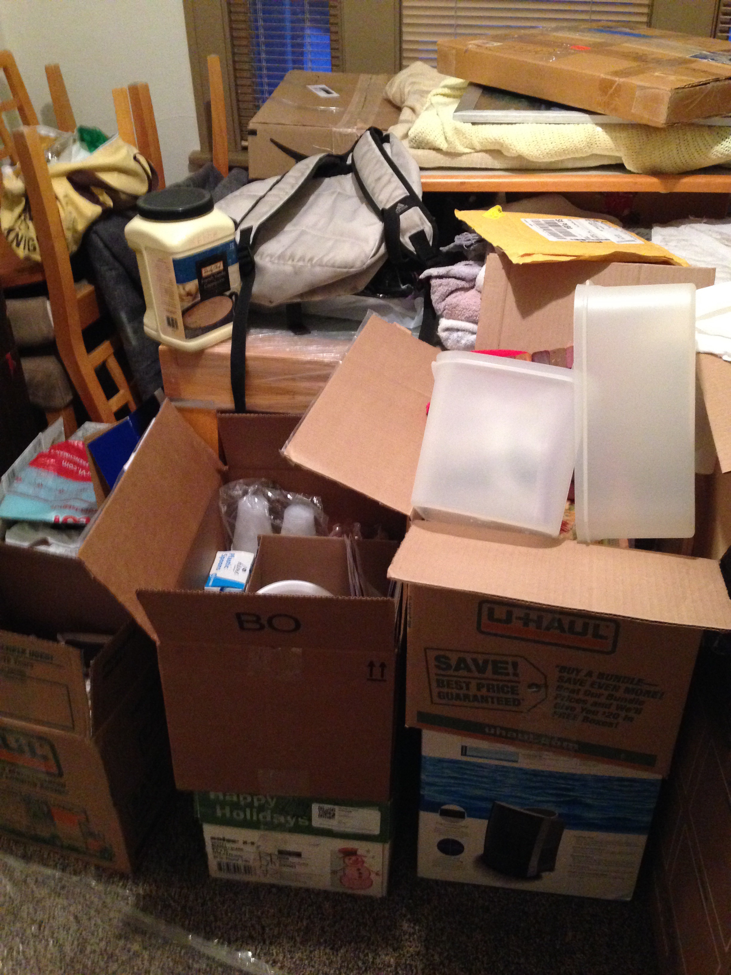 I have to admit I was happy to see certain things, like dressers (yay, no more clothes in suitcases and laundry baskets!) and the sofa and my ancient La-Z-Boy. In the kitchen, having multiples of items like measuring cups and cooking pots has been a welcome luxury. I’m also sure I’ll enjoy the dining table, once I actually see it.