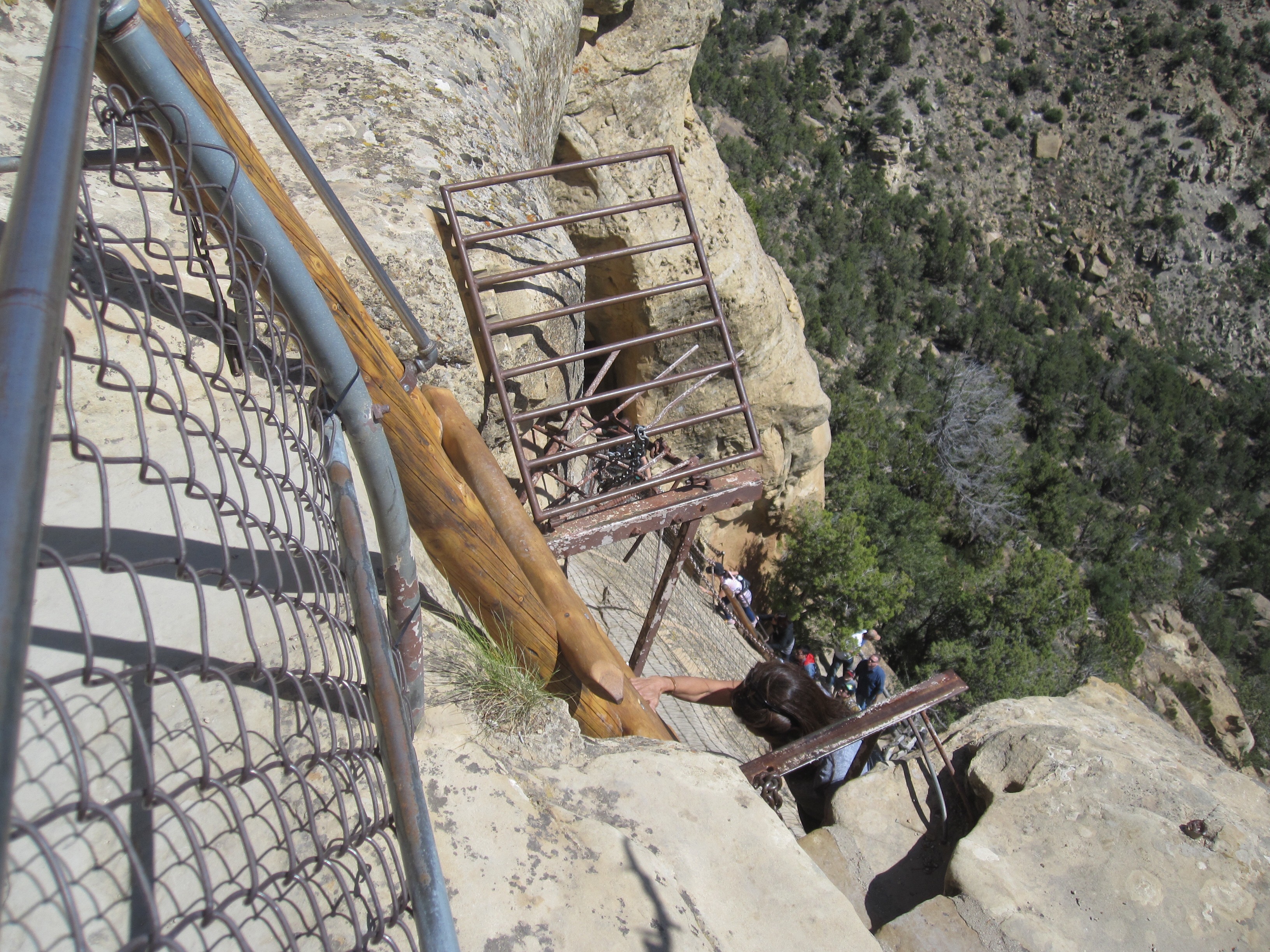 The other thing that I had not done in my visits to Mesa Verde was to take a ranger-guided tour. These tours are inexpensive (my guess is that the nominal $4/person fee is just to discourage no-shows, as it wouldn’t even pay for the ranger’s time, let alone the reservationists’), but require a ticket and ladder climbing. I’m not a big fan of “exposure,” so climbing ladders on a cliff face is not really on my list of fun things to do. But that’s how you get to the cliff dwellings, and it’s the year of doing new things, so… we signed up for the biggest ladder tour, Balcony House. Fortunately, the reservationist assured me that we would only be climbing up the ladder, not down (whew!).