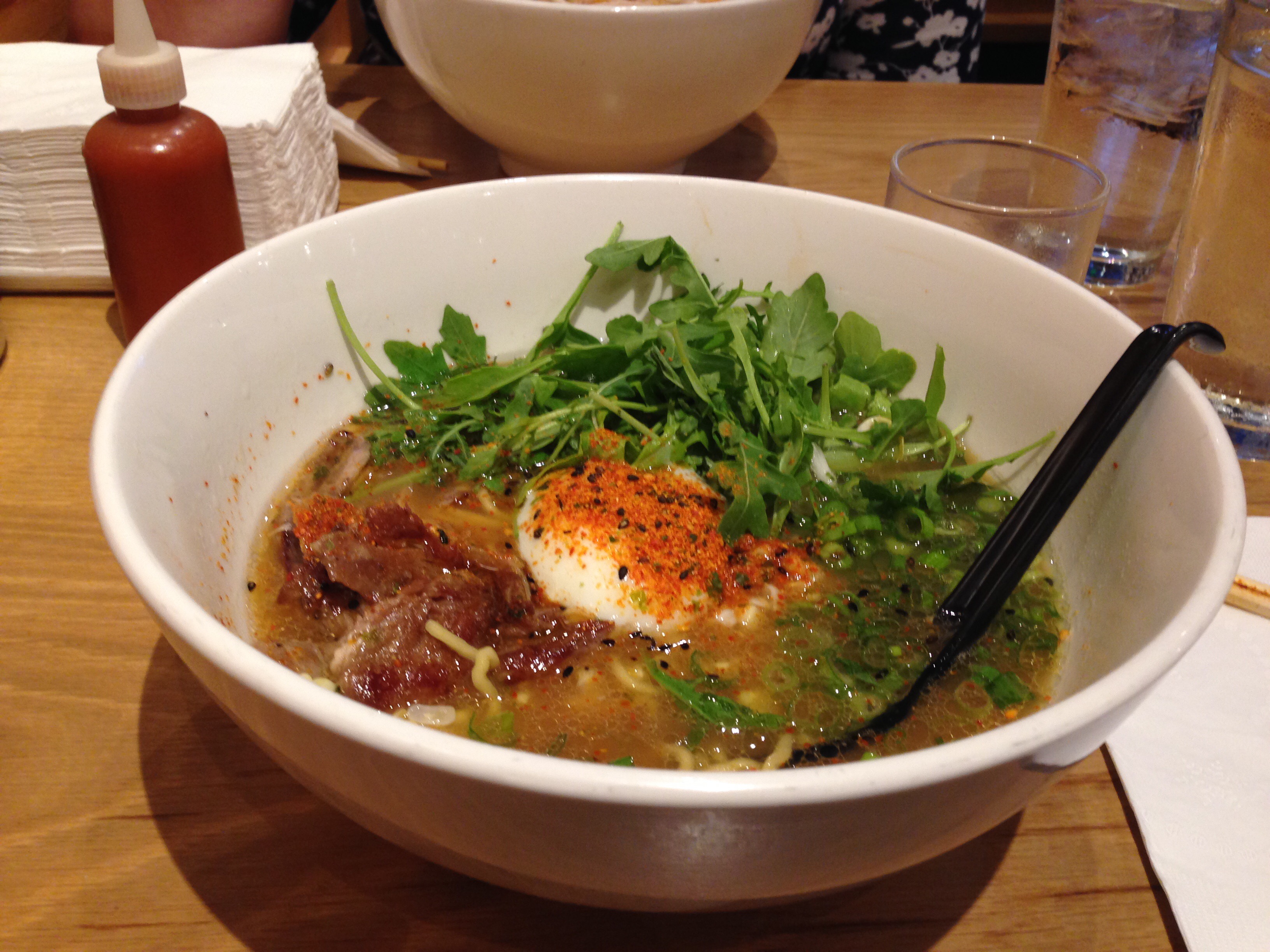 When I sent Cece a list of restaurants for this adventure, she remarked that the ramen restaurant was the farthest from her comfort zone, so we should definitely try it. This was the best night to try it, so after dropping our heavy bags in the hotel room, we grabbed a cab and headed for Denver’s Highlands neighborhood. We arrived at Uncle and were seated at a communal table (sadly with an unhappy toddler) and decided to just enjoy the ramen shop vibe. I ordered a sake and riesling cocktail to further enhance the vibe. We contemplated trying the shrimp or fried green tomato buns, but asked our server whether we should try the buns or the fried fingerlings. She said the fingerlings–she was right! The fingerlings were heavenly. They were clearly boiled first, then smushed, fried with kimchi butter, and salted. They almost melted in one’s mouth. They were perfectly complemented by scallion sour cream served on the side (aside: I usually hate sour cream). This was a tough act to follow, but our main dishes–ramen–did not disappoint. I went with duck and Cece had spicy chicken. Both were delicious.