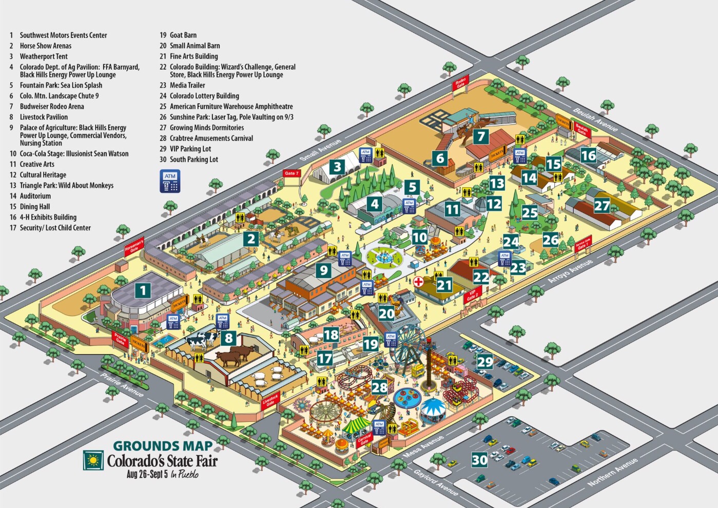 We parked in one of the fair’s parking lots (#30 the map below). On some evenings the fair offers a shuttle from a parking lot closer to downtown (and by extension closer to our current house) but this was one of the evenings on which the producers of the show did not expect a big crowd so the shuttle was not running.