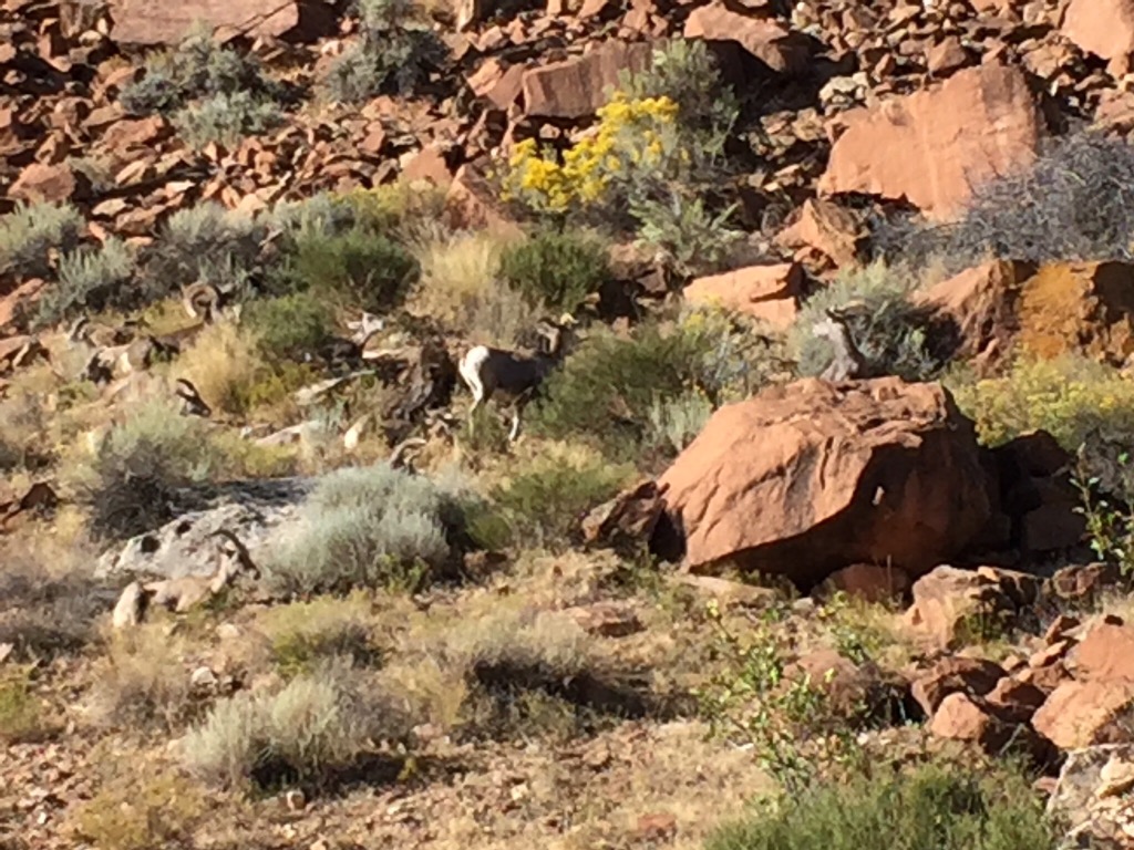 Another photo-op came shortly thereafter on a particularly steep climb up to a tunnel. I stopped to wait for Maureen, but didn’t know why so many others had stopped until I saw the Bighorn Sheep below me.