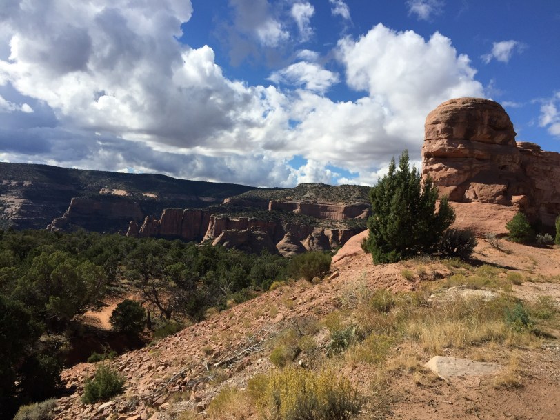 At lunch we also confirmed the evening’s plans. A teammate’s sister and brother-in-law, who live in Grand Junction, had graciously offered their home for our evening gathering. We set a time and all headed back to our lodgings to clean up and rest up. The evening’s get-together was one of the highlights of the weekend. Our hosts live high on the hills of Grand Junction, so the views are fantastic. The early-October weather was perfect for dining on the outdoor porch. Thai food had been ordered and picked up, which worked well for a group with varied dietary restrictions and tolerances for spiciness. It was yummy. And for dessert, what else but ice cream? The hospitality, the company, the weather, and the food were all great. Sigh.