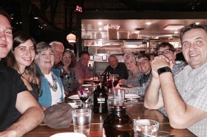 The next celebration was with family, including my parents (who came from Ohio to celebrate and spend a couple weekends with us in Pueblo), brother, uncle and aunt, brother- and sister-in-law, and niece and her boyfriend. We ate at Linger, one of my favorite restaurants in Denver (can you say duck buns??), which I know was a stretch for some of those in attendance. For the record, I appreciate it. We followed up with something everyone likes–my mom’s cake. Sigh.