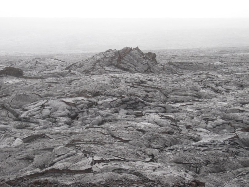 Eventually, I tore myself away and hiked back to the bike. Just in time, as it turned out, since being on the bike was much better than being on the lava in pouring rain. The ride back was wet. But as most outdoor enthusiasts know, there is a point where “wet is wet” and it does not matter anymore how long you stay out–especially if it’s not cold, and it was not. I pedaled back as quickly as I could, turned the bike and helmet in, and called Maureen. She had been waiting on the other side of the puddles, and came to get me a few minutes later. I was wet, but it was worth it.