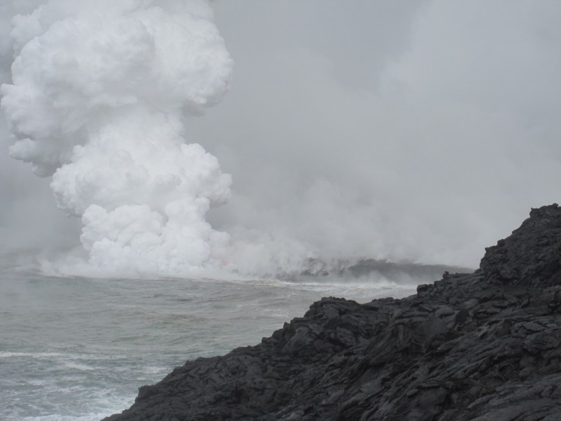 Most of what could be seen was steam, but in addition to the lava glow, there were regular spews of volcanic rock when the lava hit the water. Even from this distance it was mesmerizing.