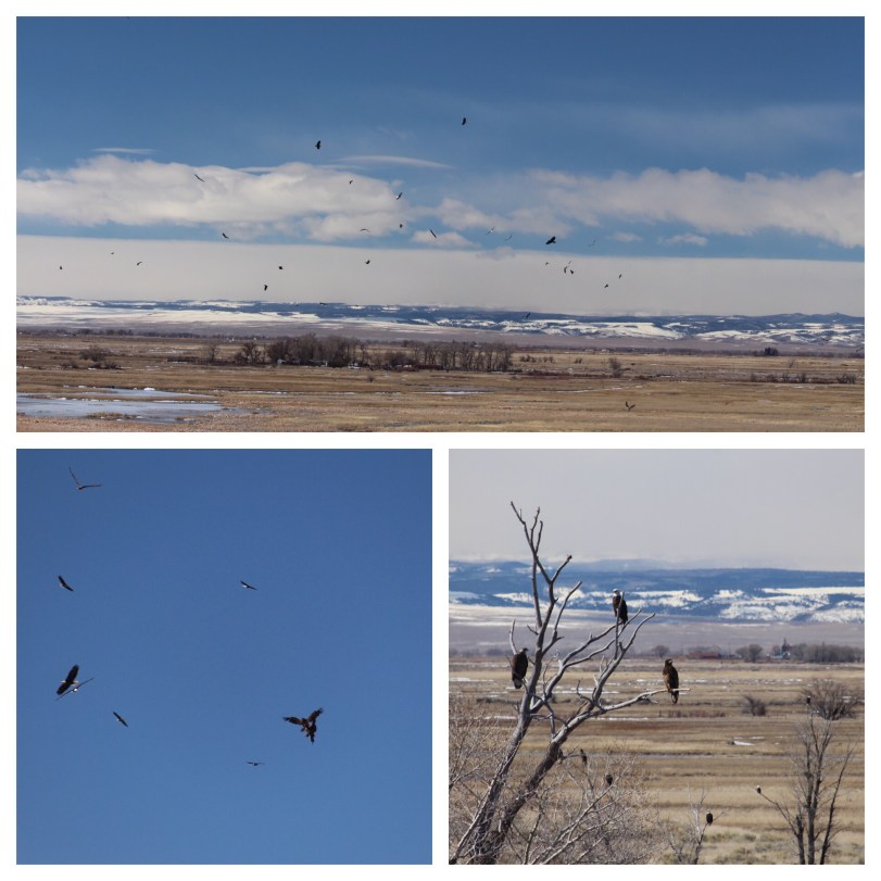 We had no idea that we would see bald eagles at all, let alone dozens of them. Apparently (Lathrop ranger again) they are very social creatures and hang out in large, playful (see lower left image above) extended-family groups. Wait, convocations. The woman from the previously mentioned pickup told us that the eagles do not nest in this area, but instead stop over, much like the cranes. The ranger confirmed this and said that the area from Pueblo to Alamosa had become quite “popular” with the eagles. Bald eagles are one of the conservation movement’s great successes. In the 1950s and 1960s, their estimated population in the continental United States dipped below 1000, largely due to reproductive issues caused by the pesticide DDT. Seeing a bald eagle was an incredibly rare treat when I was a child and even into my young adulthood. Now, with the phase-out of DDT and cleaner waters to fish in, there are hundreds of thousands of bald eagles in the U.S.