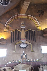 The Tusayan Museum and Ruin weren’t open yet, but we were not too disappointed, as we had not yet caffeinated or eaten. We moved on to Desert View Watchtower, which was open. This is another Mary Elizabeth Jane Colter project and it is pretty fantastic. Each level has a different motif, and there are also murals by Fred Kabotie illustrating Hopi life. The views are spectacular too.