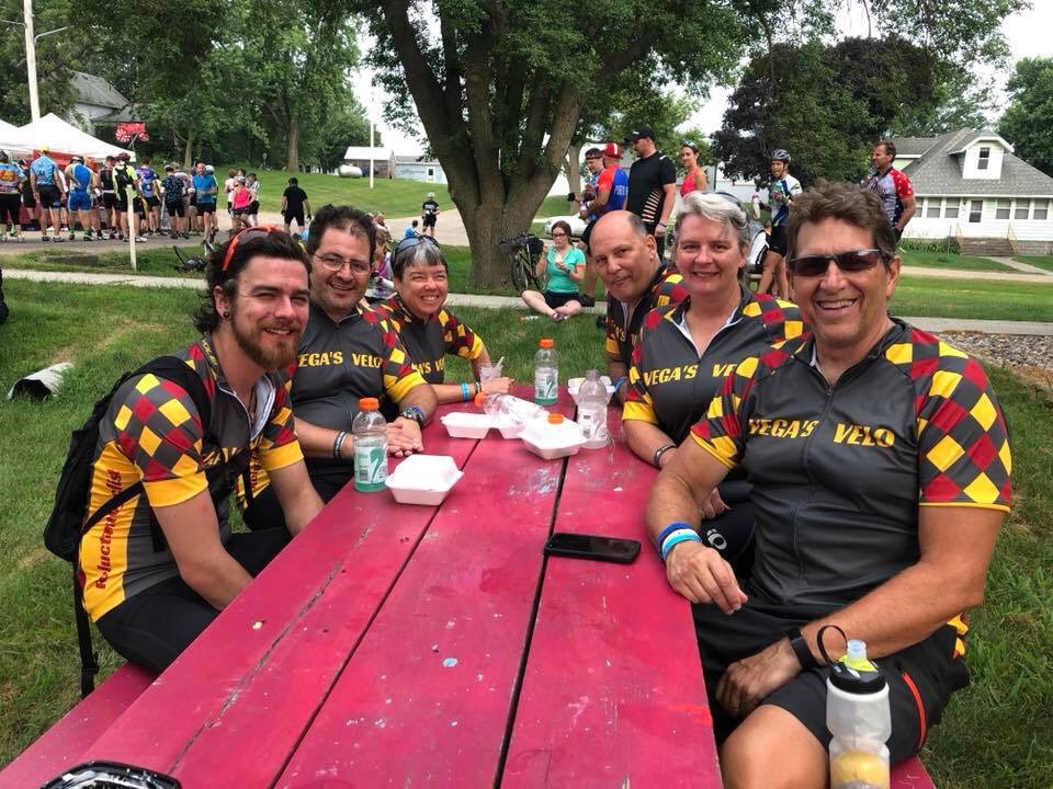 Slightly happier, we headed out for more hills and miles. We lunched at Coon Rapids, where I had chicken stir fry from Leaf Grill. They were also selling lemonade for $5, which did not seem like a good deal compared to cider or beer for $3–you can guess where this is going…