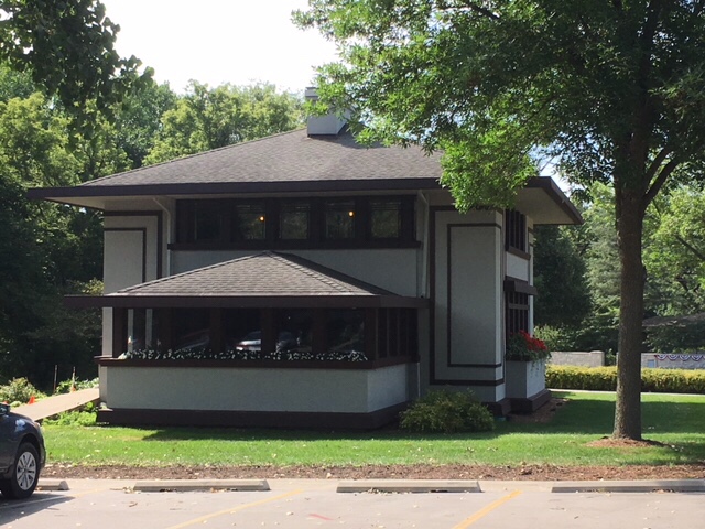 For those who are interested, the Prairie style means strong horizontal lines that evoke the prairies of this part of the country, deep eaves, hipped roofs (all sides slanting down to the walls), and long ribbons of windows. There are other features too, but this is the essence of the style.