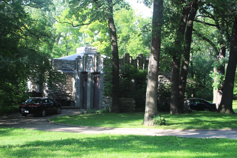 After checking in, and having read about the Rock Glen/Rock Crest neighborhood I mentioned above, Angie and I decided to do part of the walking tour that covers that neighborhood. We used the Mason City Walking Tour Guide, which we bought at the hotel. Although we didn’t cover every house in the book, we did see a lot of the houses that interested us, and others that were close by. There were examples of many types of architecture, including Queen Anne, stickstyle, and Foursquare, but our favorites were the Prairie and Usonian style houses, plus a very unusual Griffin house, the Joshua Nelson House. Griffin and the other architects featured in the area were all drawn there after Wright started working in the community.
