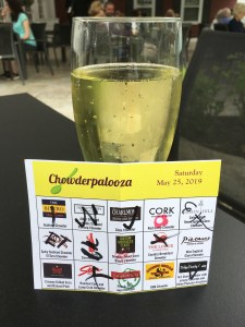 After a short and productive visit to Pinnacle Ski & Sports, we returned to the inn and changed into warmer weather clothing for the 3/4 mile walk into Stowe to enjoy Chowderpalooza. I enjoyed it more than Maureen did, as most of the offerings contained shellfish or pork or both. We both enjoyed the red curry chowder by CORK. I also liked the Green Goddess Cafe’s smokey sweet corn chowder. We voted for our favorites, then went in search of lunch for Maureen. We found sirloin flatbread and cider at The Whip in the Green Mountain Inn.