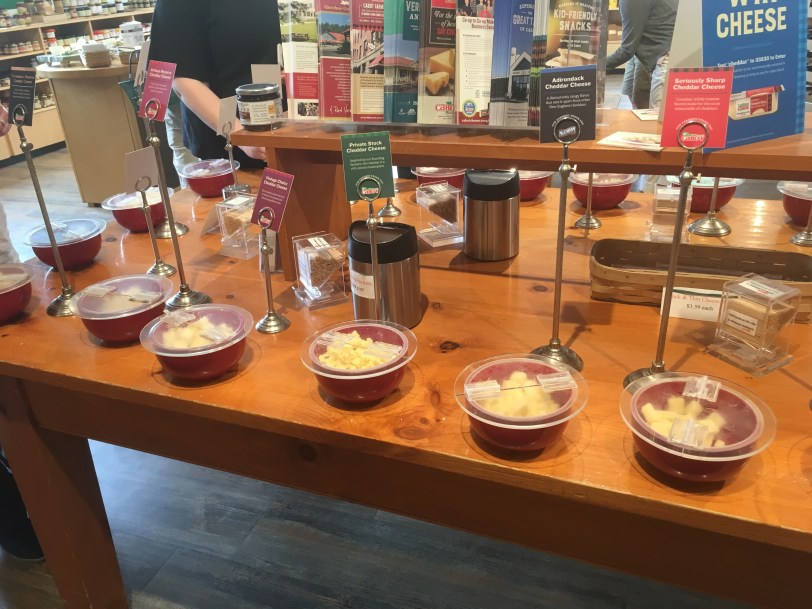 Our successful shopping meant we were a little shy on luggage space, so after lunch we headed back to the friendly environment of Vermont Trailwear to acquire an additional duffel. We took the scenic route there, passing by the supposedly haunted Emily’s bridge (we experienced no paranormal activity while driving by) and got to see more of where people actually live in Stowe/Waterbury. While we were in the Vermont Trailwear shopping center, we HAD to stop in for more samples of Cabot cheese. We’re not doing “van life” this trip, so sadly no cheese could be purchased for later consumption.