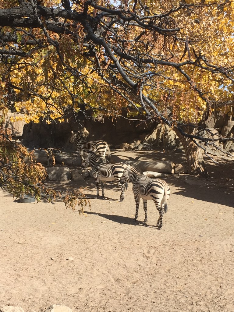 The train was extremely slow and stinky, but the autumn scenery was beautiful, and it was the closest I got to Albuquerque’s wonderful Paseo del Bosque (multi-use) Trail. Next stop was lunch in the Shark Reef Café. The salad was decent, despite the flavored chicken, and the aquarium view was great.