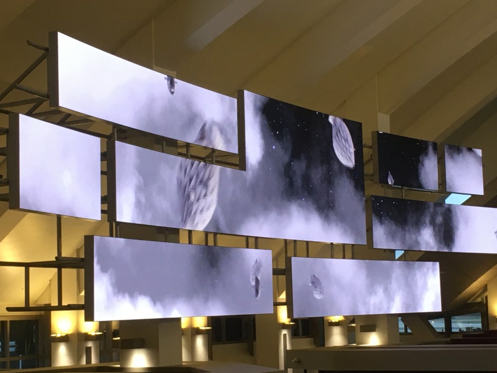 The “entertainment” included a TV with the sound muted (yay), people watching, and a tower and set of screens in the main terminal upon which very fancy ads were playing.