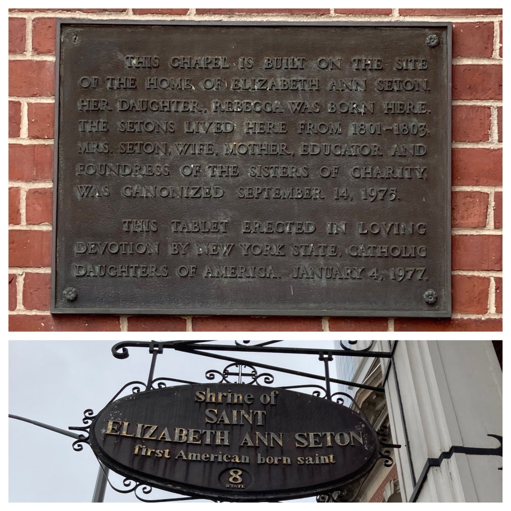 As we crossed the street, we noticed a plaque marking the one-time home (and now shrine) of Saint Elizabeth Ann Seton, the first American-born saint. Some members of the Sisters of Charity, which she founded, served my Ohio high school, including our fantastic principal.
